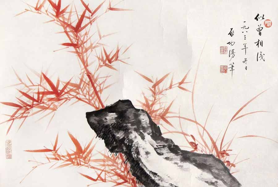 △1979年作 朱砂兰竹图 78.5×54.5cm