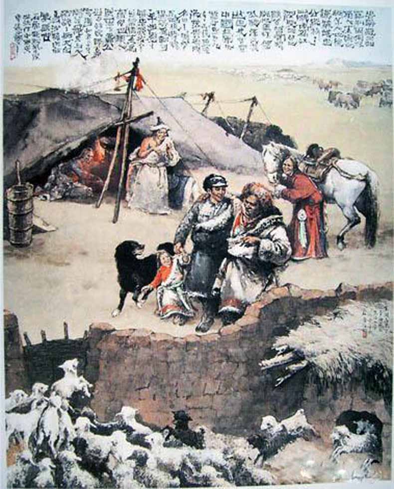石鲁用新国画来反映中国***斗争和社会主义建设的时代精神,非常重视从生活中提炼艺术的黄金,并且力求在构思立意上创作的《古长城外》,可以说是这个时期从事国画创作中有较大影响的代表作。这幅作品在绘画技法上基本是写实的,既按西洋明暗画法,又吸收中国年画的特点。但最重要的还是独具匠心、引人注目的构思。它的主题是描写新修的铁路穿过古老荒寂的长城伸向远边塞外,歌颂我国解放初期社会主义建设日新月异的伟大成就。