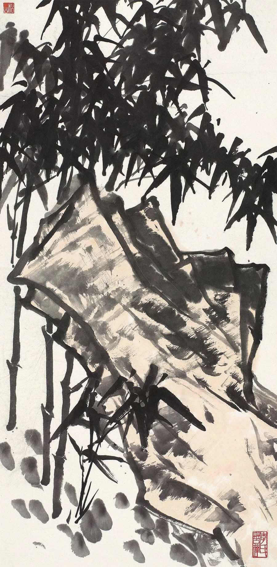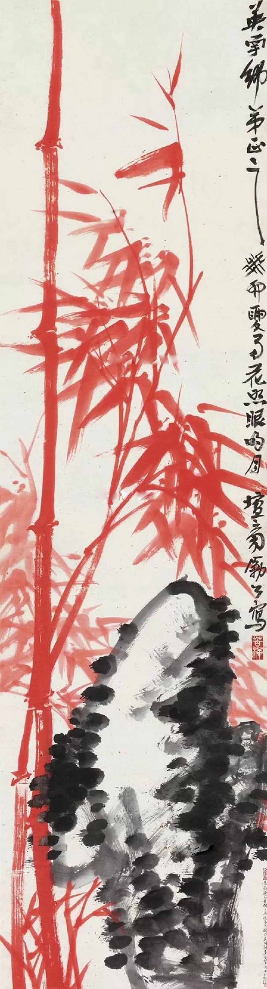 △李苦禅 朱砂竹石 180×48cm