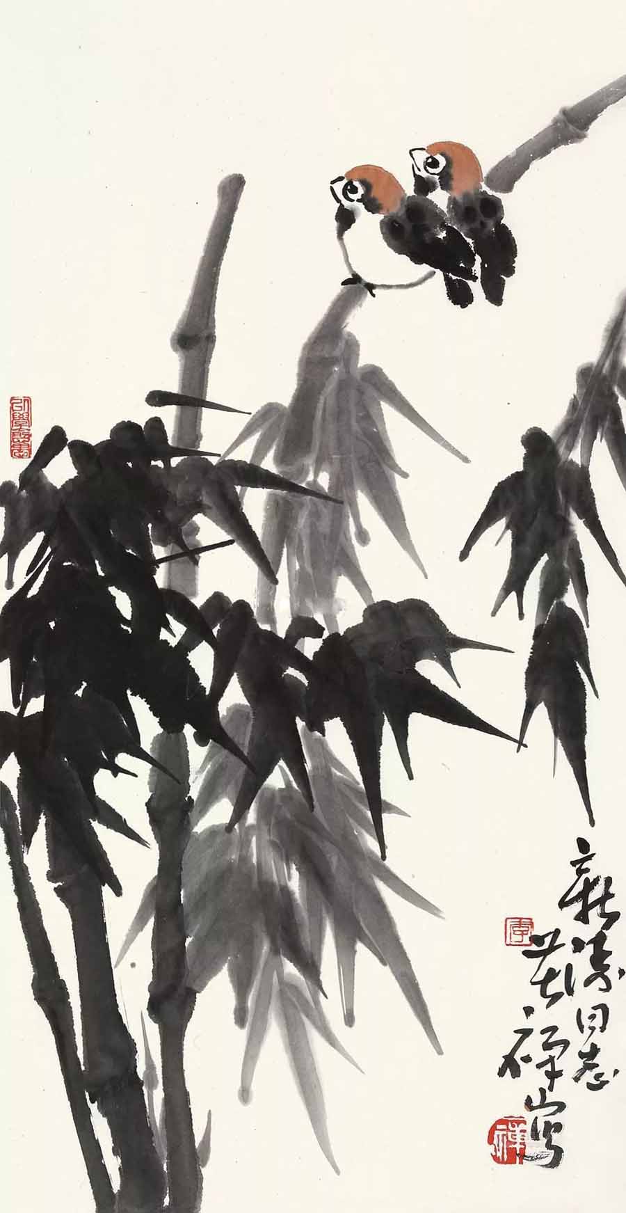 △李苦禅 竹雀 51×44cm