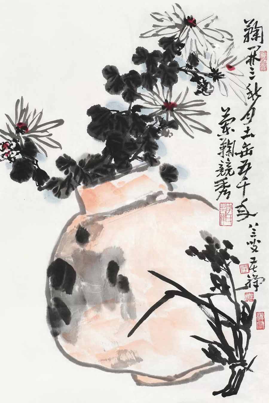 △李苦禅 兰菊竞秀 67×45cm