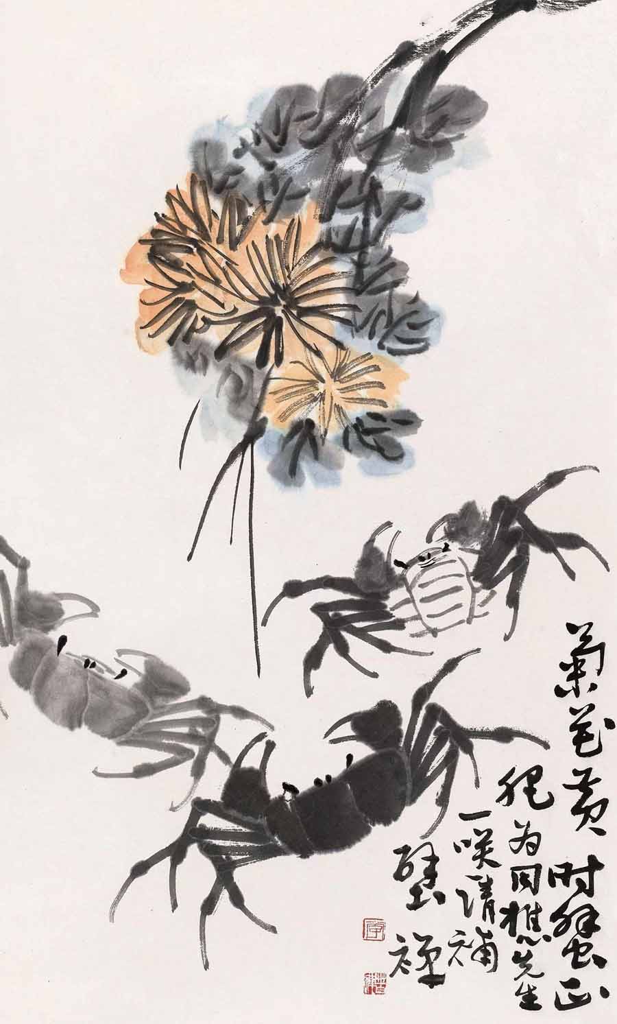 △李苦禅 菊蟹图 69×42cm