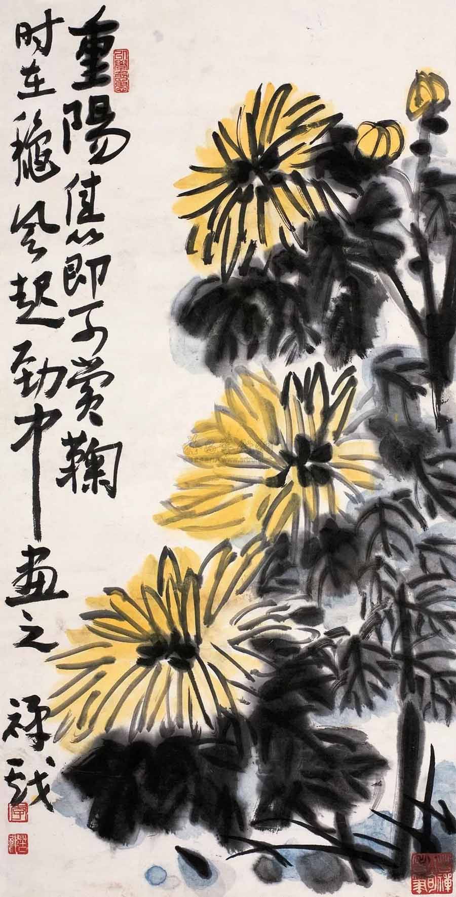 △李苦禅 重阳佳节可赏菊 69×34cm