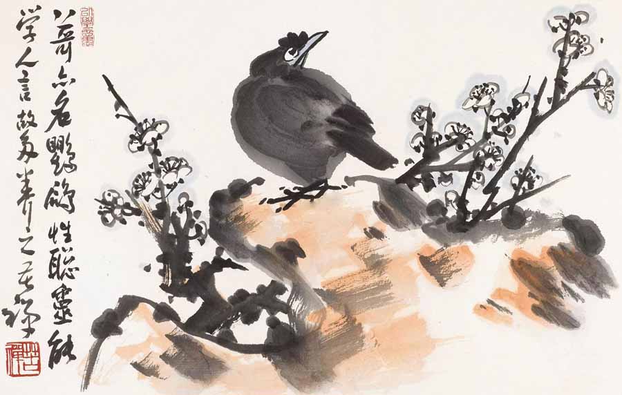 △李苦禅 白梅八哥 34×53cm