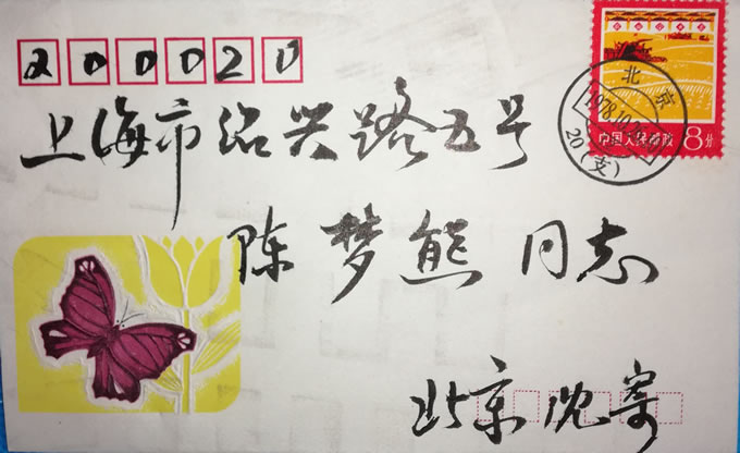 2、信封:上海市绍兴路五号 陈梦熊同志 北京沈寄