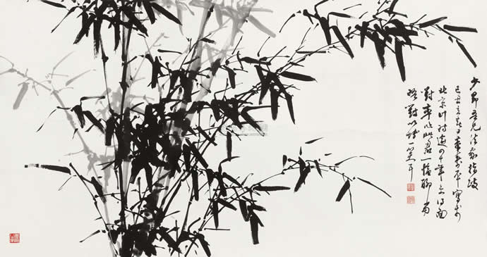 董寿平曾说:“画竹的过程就是如何将具象美与抽象美和谐统一的过程,也就是画家本身与所画之竹融为一体的过程。人即是竹,竹即是人,要做到入画竹、竹化人。”这种朴素的哲学思想和美学理念成为董寿平作品鲜明的特征。看董寿平笔下的竹子,飒飒潇潇,不仅有着一股纯阳正气,一股隽永清和的“书卷气”,同时还能够品味出一种谦和醇厚的儒士风范。