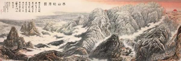 △《泰山朝阳图》 彩墨画 700X300CM 1983年