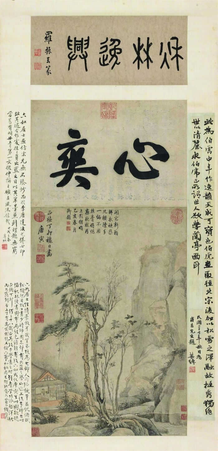 画轴两边上,一行行鉴藏题署令人目不暇接,罗振玉(1866—1940)、褚德彝(1871—1942)、黄宾虹(1865—1955)、叶恭绰(1881—1968)等一个个蜚声艺林的大腕行家都曾细细观赏、赞叹、品评。