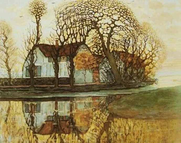 二十岁,他放弃教中学素描,而前往阿姆斯特丹就读美术学校。三十二岁以前,一直是自然派风景画家。1908年以后,开始画和象征主义有关的绘画,在此之前的风景画早已显现了水平与垂直的组合。他也受到梵高和野兽派的影响,而有1909至1910年的红树之作品。