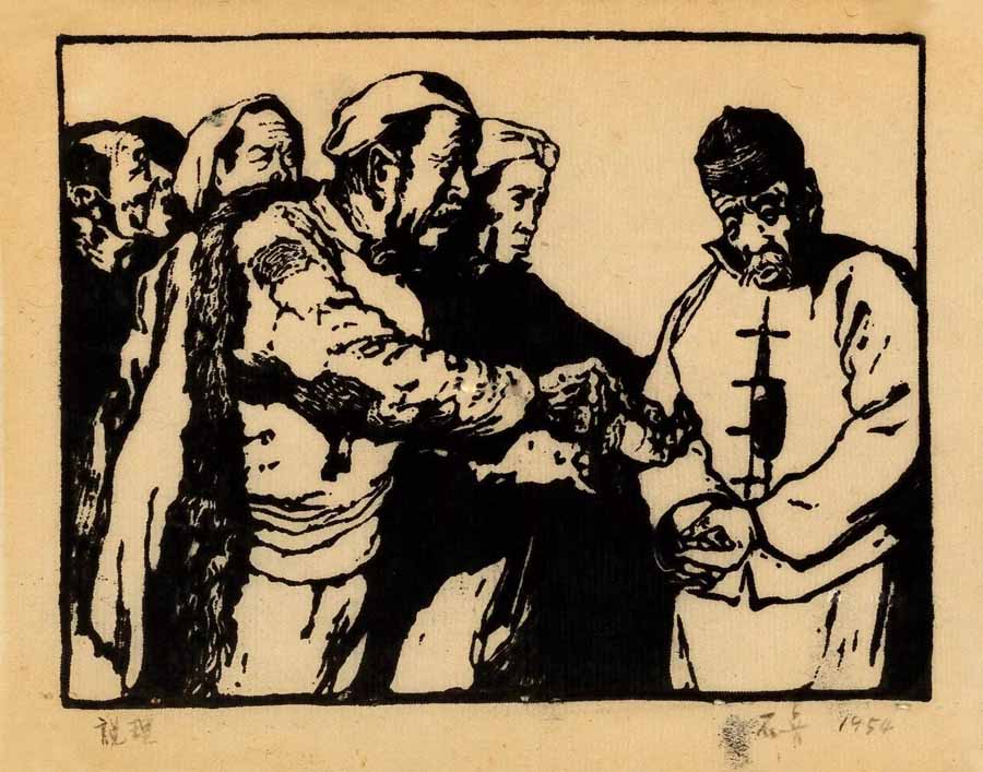 石鲁版画 1954年作《说理》纸本 黑白木刻 13×16.5cm