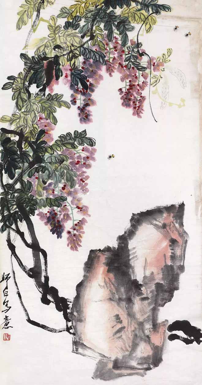 △娄师白(1918~2010)《 紫藤蜜蜂》133×69.5cm