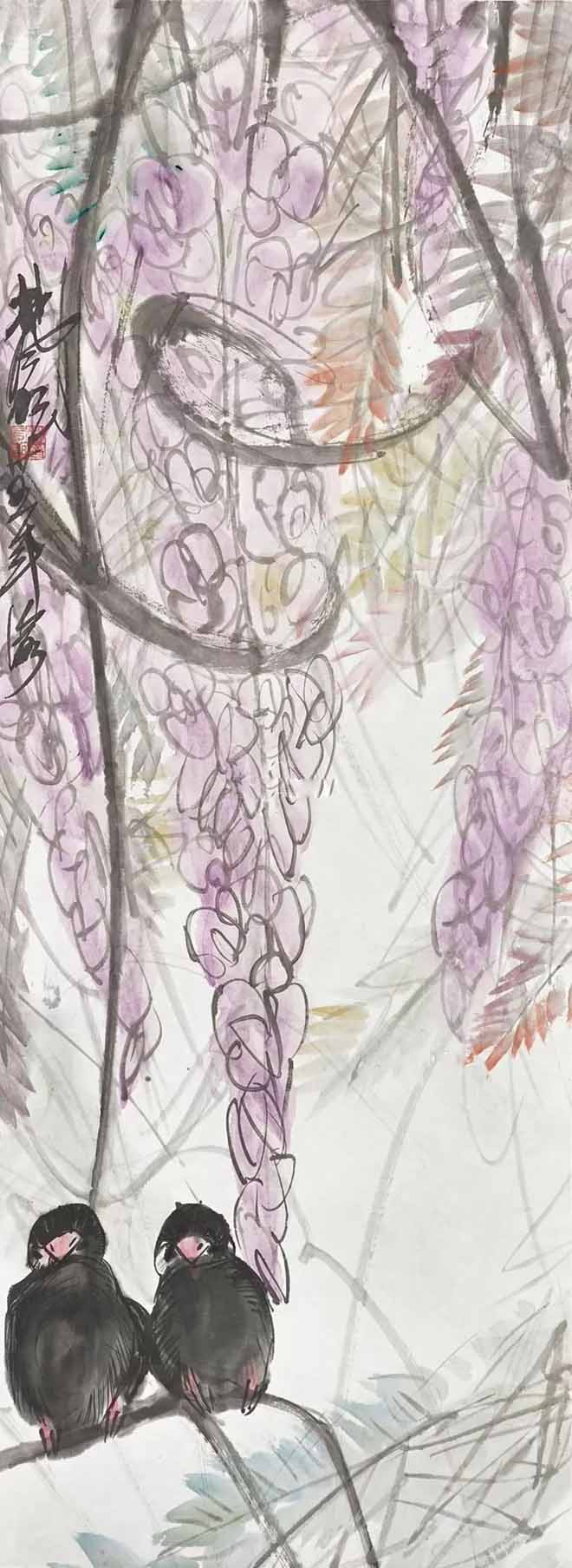 △林风眠(1900-1991) 1946年作《紫藤双鸟》96.5×35.5cm