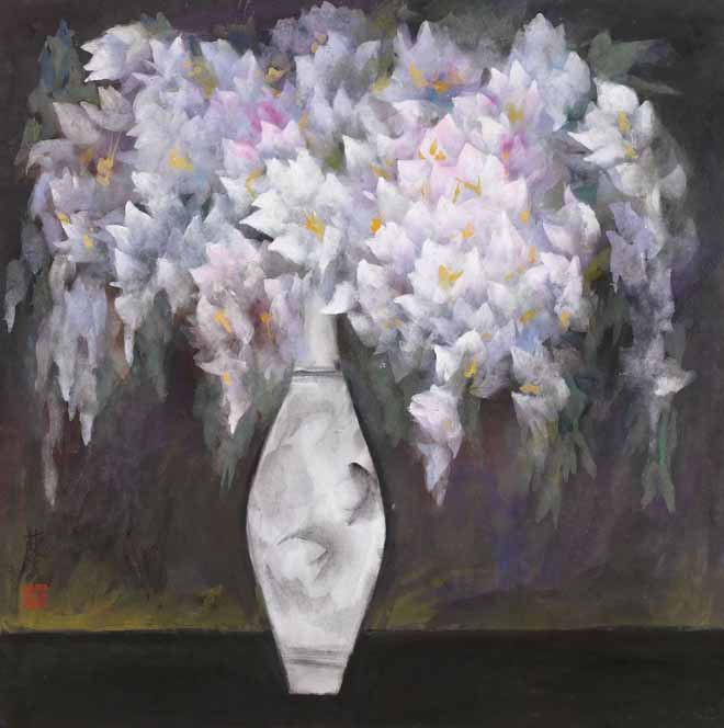 △林风眠(1900-1991)1957年作《紫藤瓶花》68.5×68.5cm