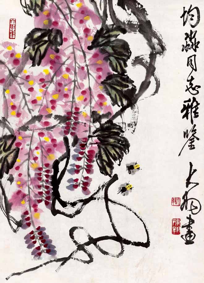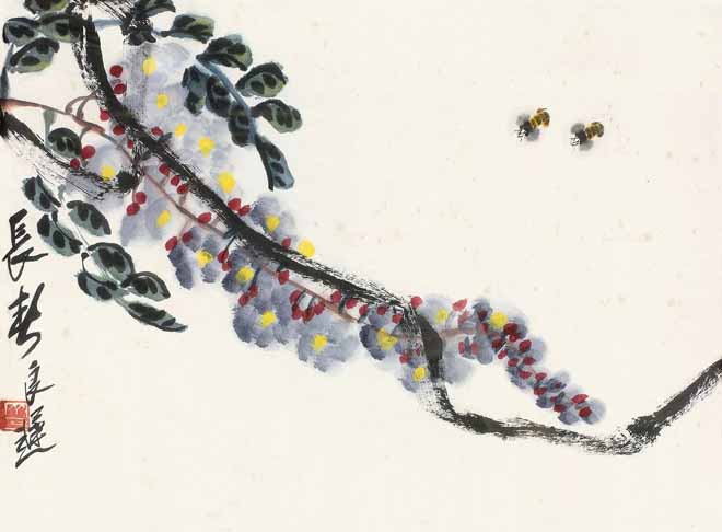 △ 陈大羽(1912~2001)《紫藤蜜蜂》70×50cm