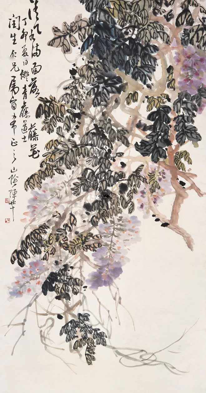 △ 陈半丁(1876~1970)1927年作《 紫藤》90×47.5cm