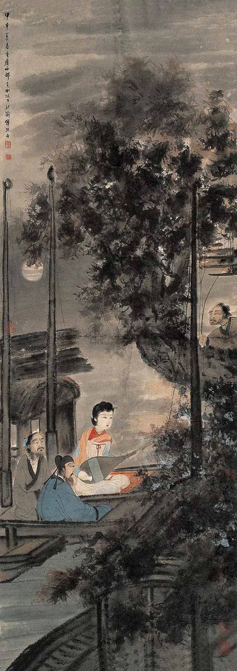 早在2011年11月13日,傅抱石作品《琵琶行诗意》(见下图),经过场内外买家数轮激烈的争夺之后,最终以8280万元的高价成交,刷新了当时傅抱石个人作品的全球拍卖纪录。此幅作品于2018年6月17日在北京保利又以1.035亿的高价成交。