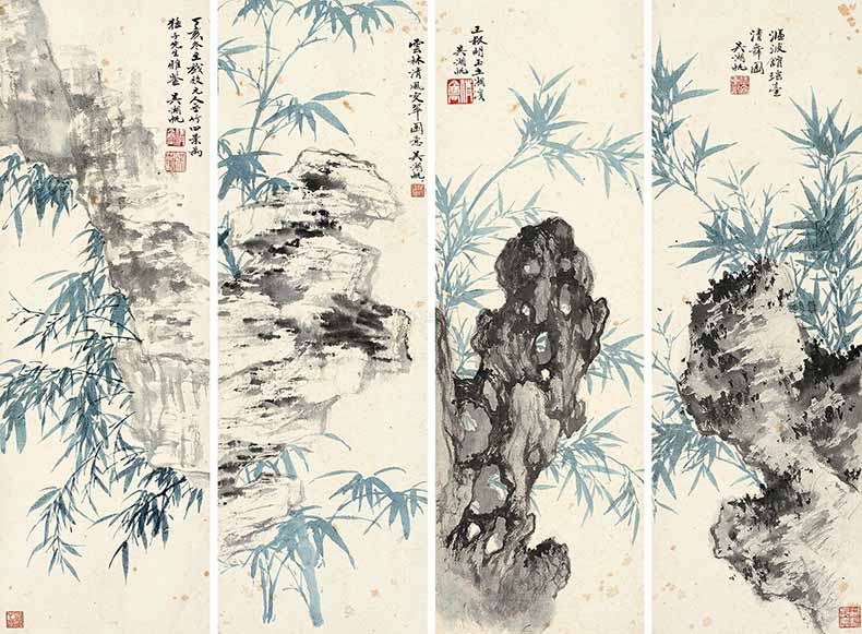 △吴湖帆 1947年作 竹石图 四屏 126.50万