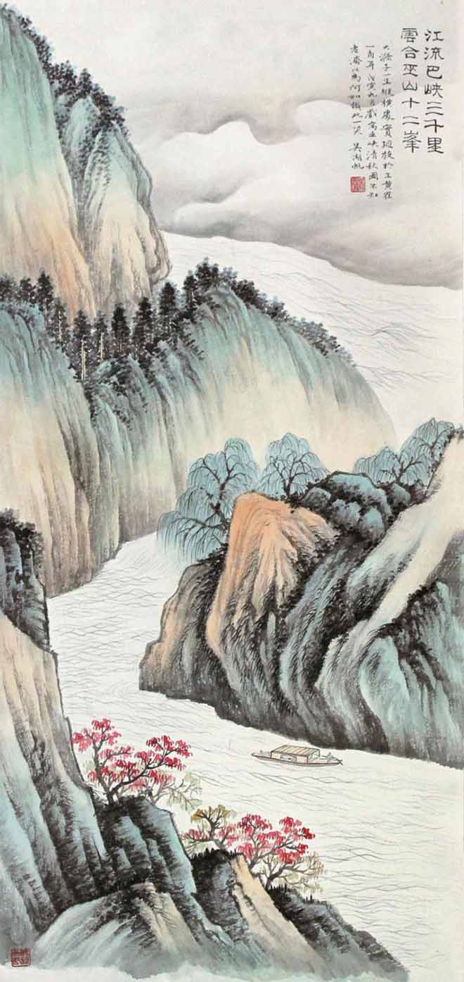 吴湖帆山水从“四王”、董其昌上溯宋元各家,冲破南北宗壁障,以雅腴灵秀、缜丽清逸的复合画风独树一帜,尤以熔水墨烘染与青绿设色于一炉并多烟云者最具代表性。并工写竹、兰、荷花。二十世纪中国画坛一位重要的画家,他在中国绘画史上的意义其实已远超出他作为一名山水画家的意义。