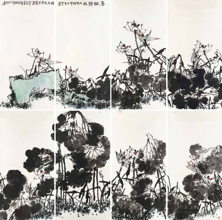 14、崔如琢 2011年作 盛世荷风 (八幅)1.01亿