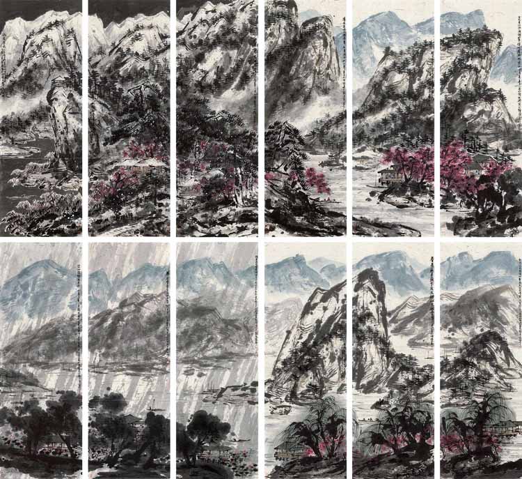 10、崔如琢 2013年作 山水 四屏镜心 1.10亿