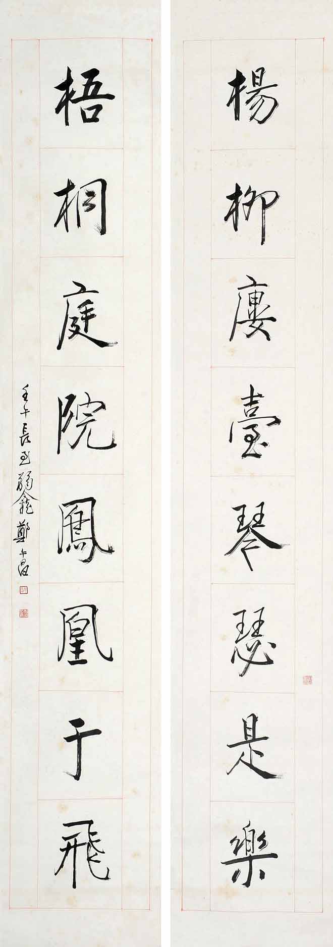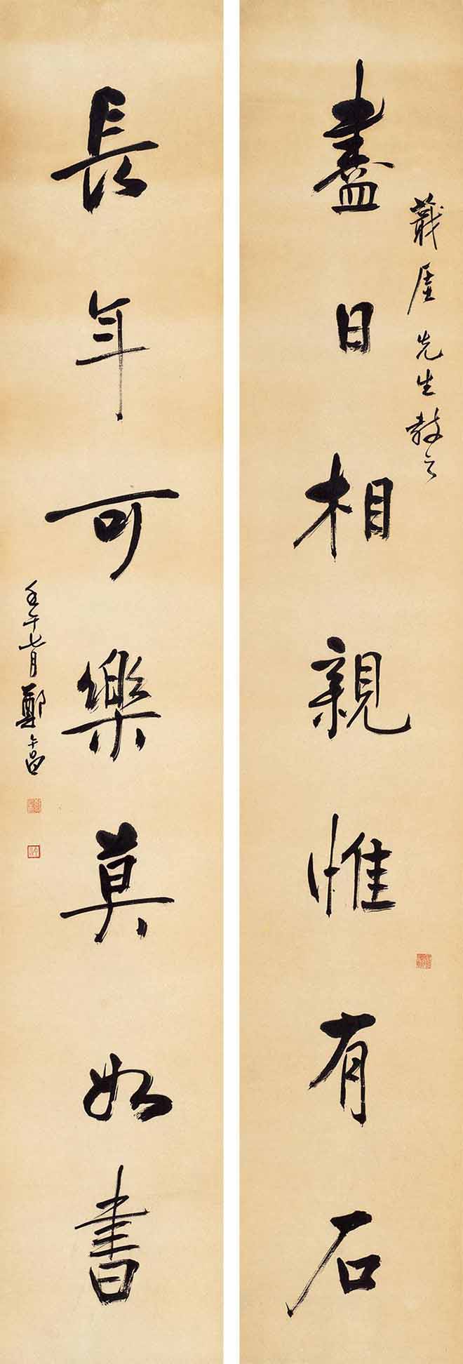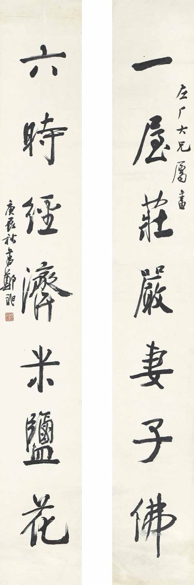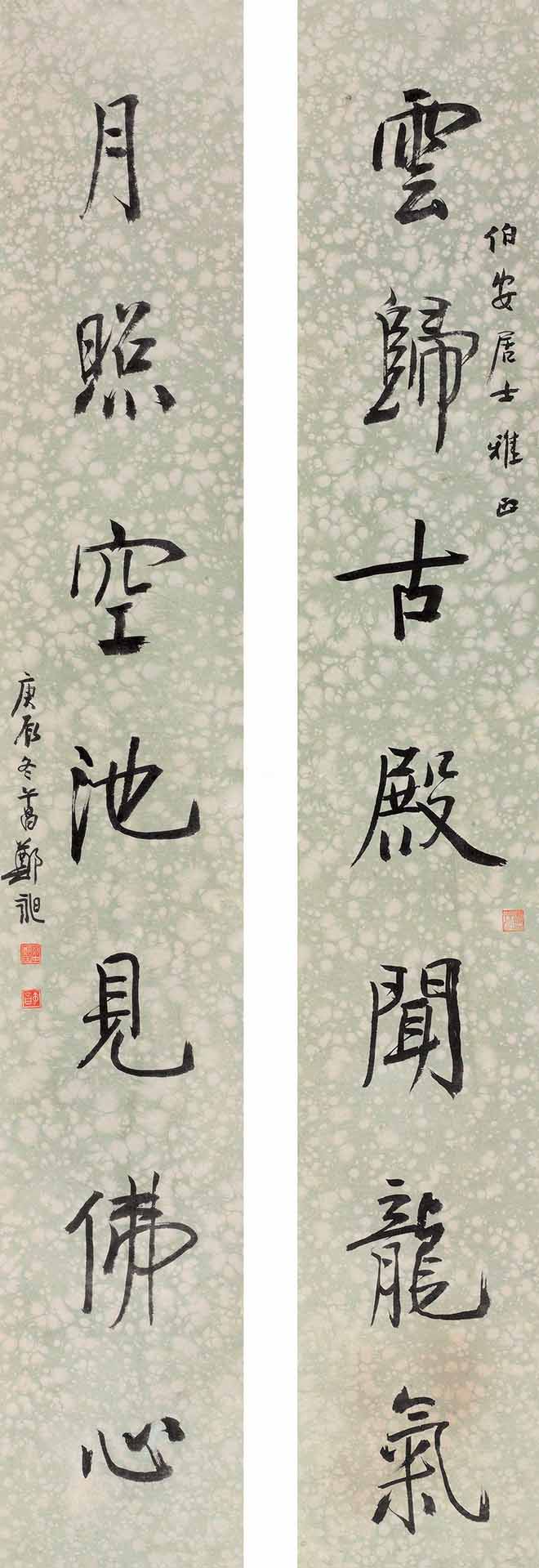 △郑午昌 1940年作 行书七言联 126×120cm×2