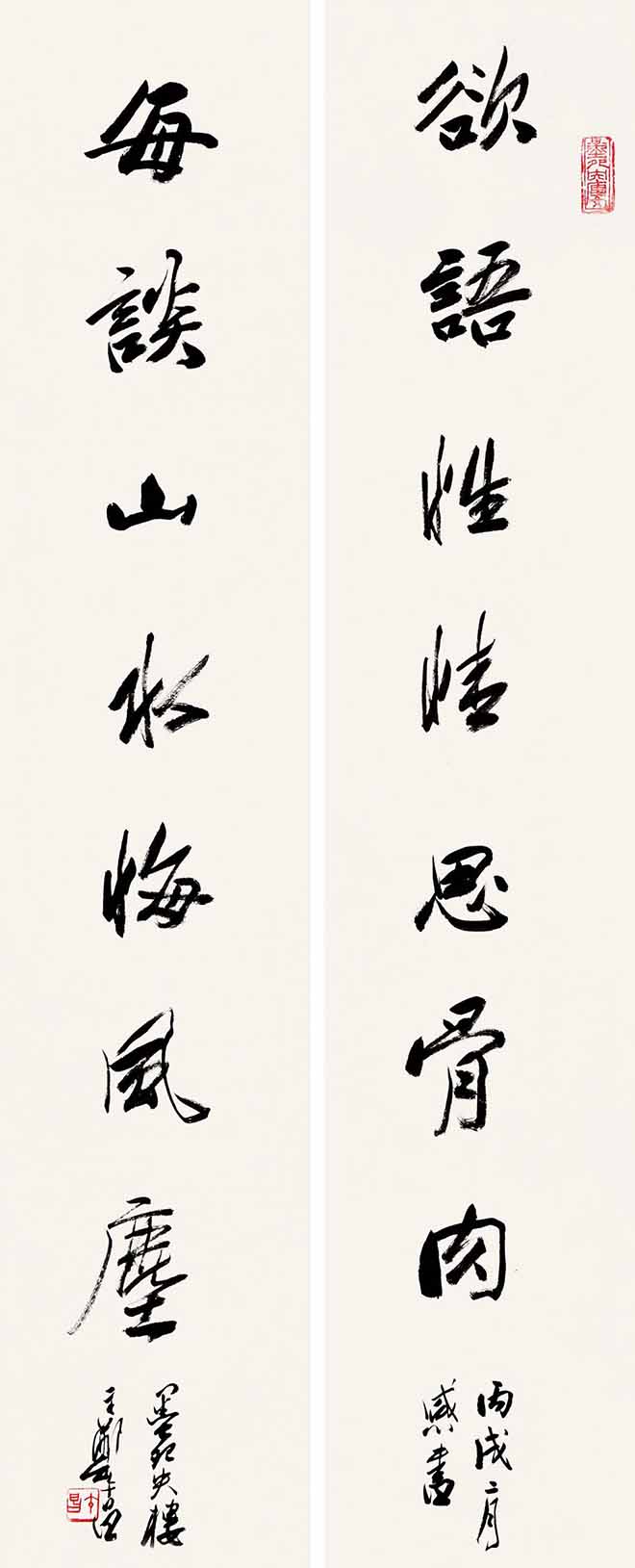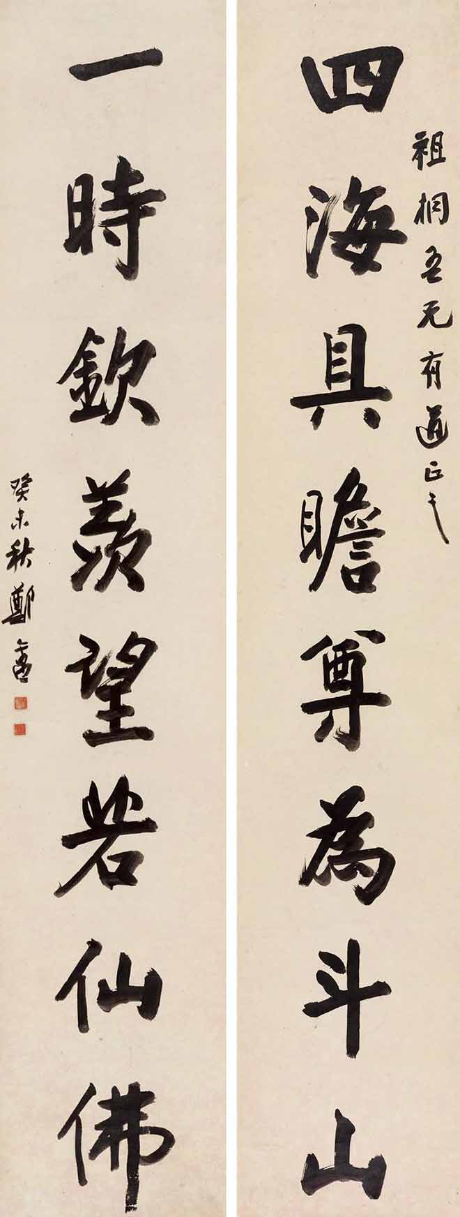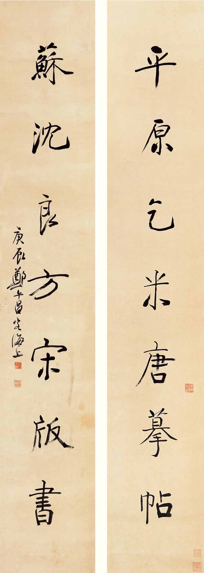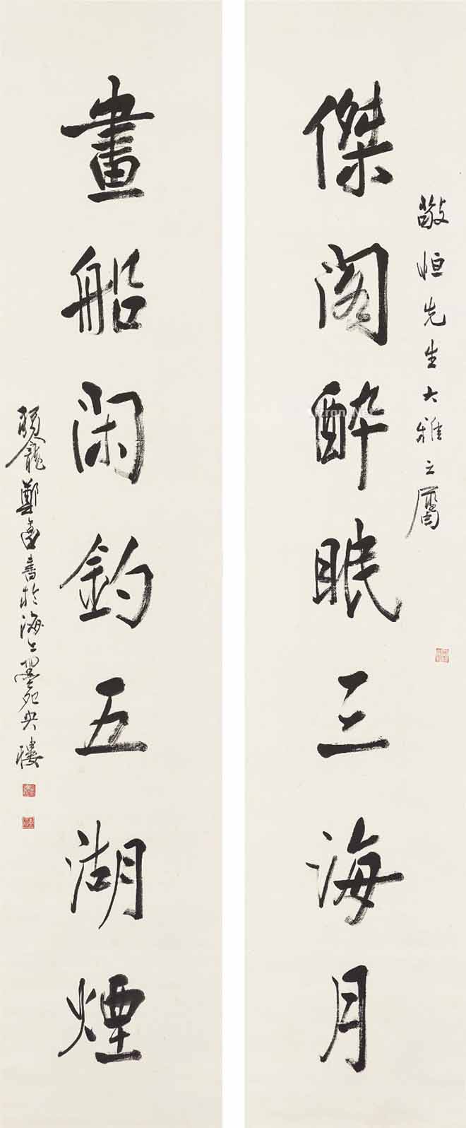 △郑午昌 行书八言联 145×25cm×2