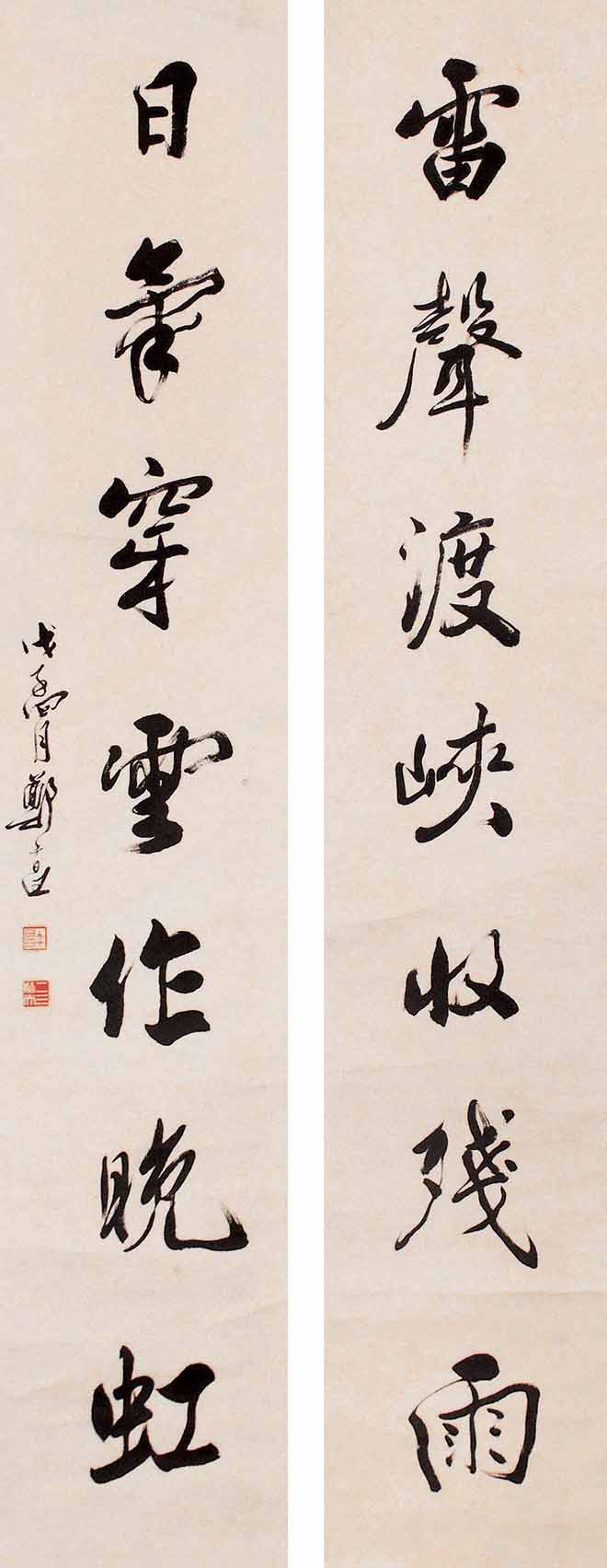 △郑午昌 1946年作 行书七言联 99×19.5cm×2