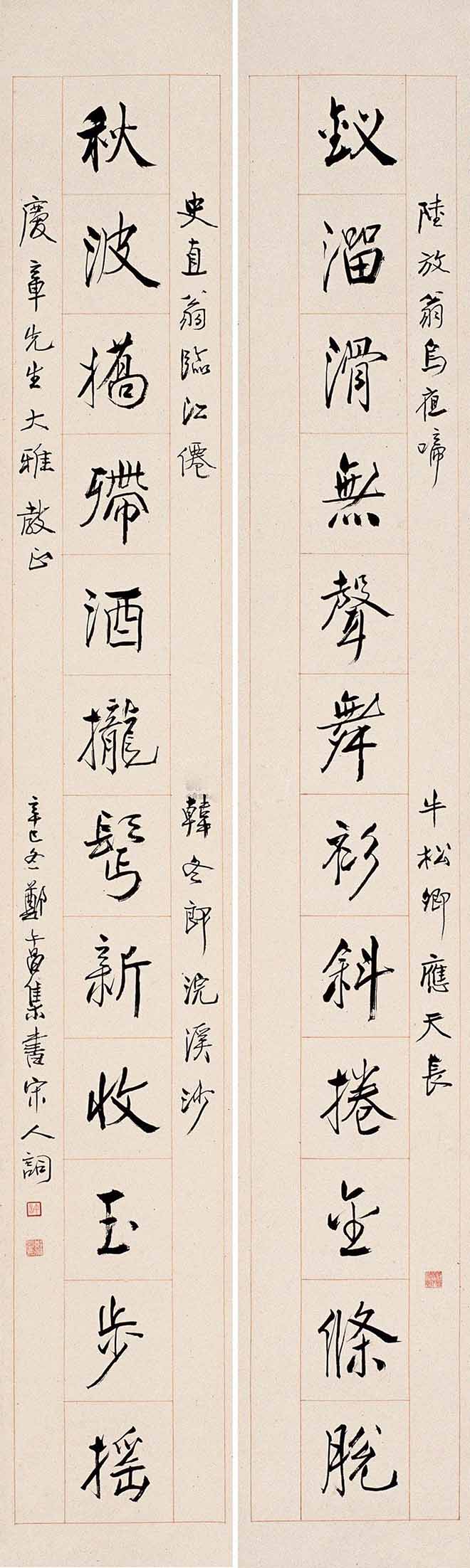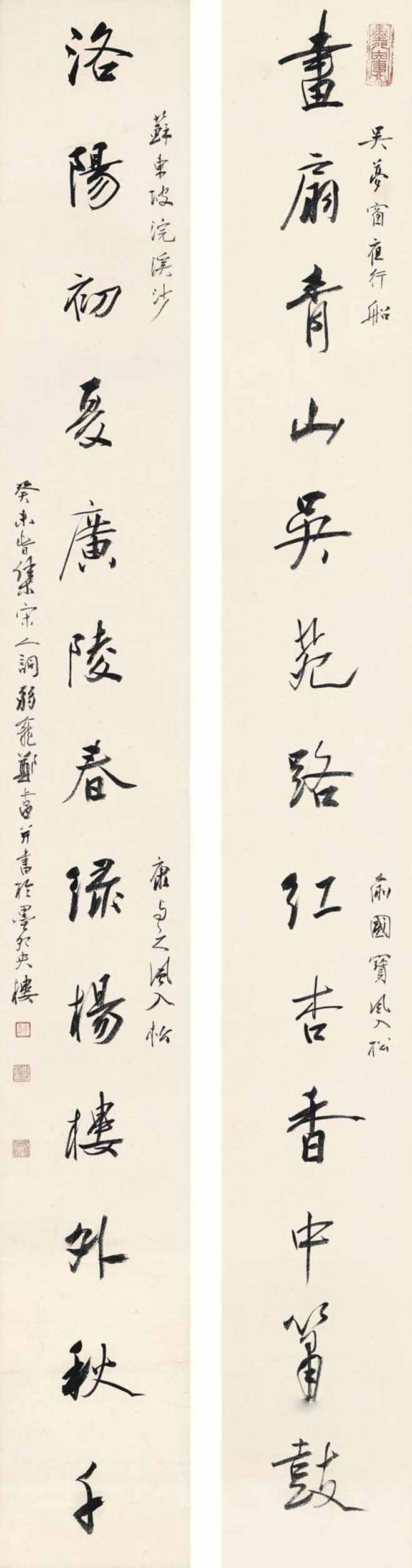 △郑午昌 1943年作 行书集宋词联 128.5×15.4cm×2