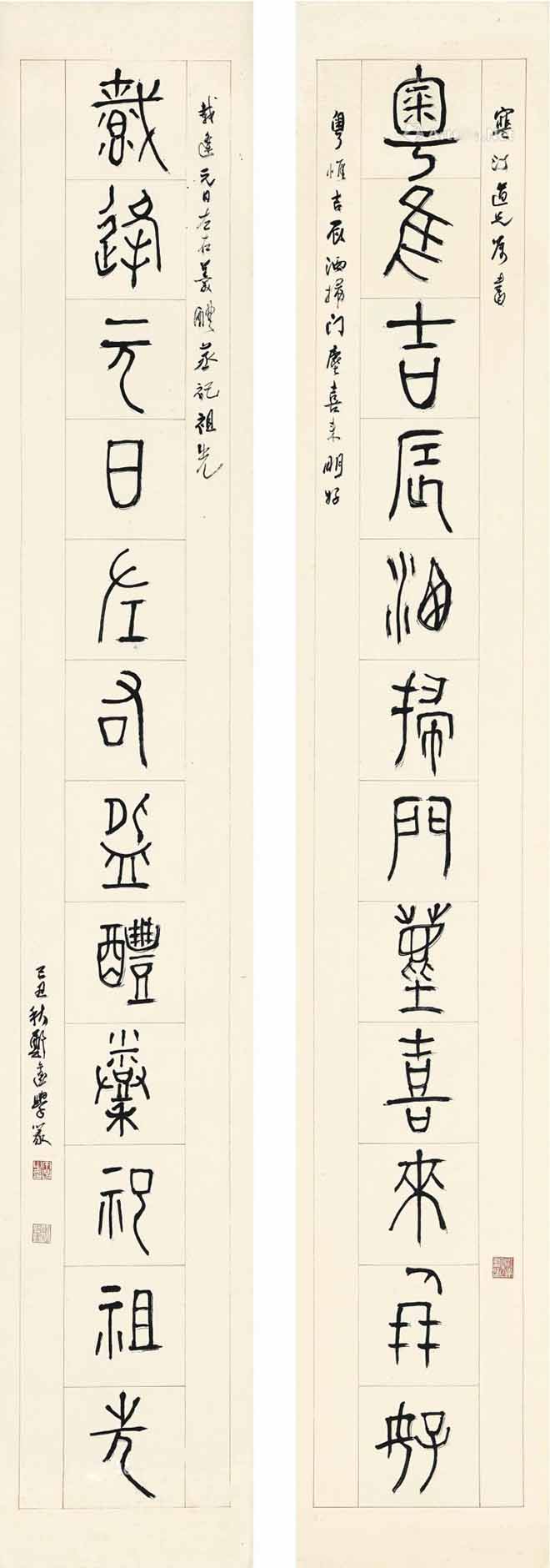 △郑午昌 1949年作 篆书十二言联 129.1×21.2cm×2