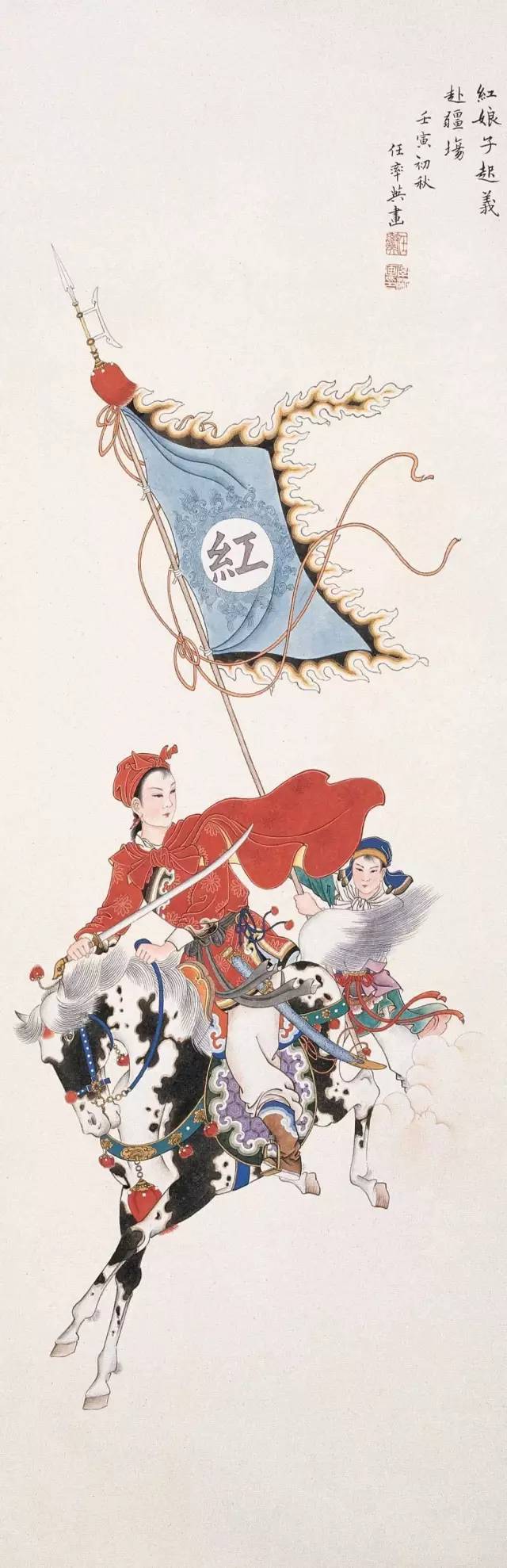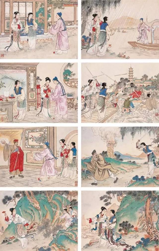 任率英(1911-1989)原名敬表,中国现代连环画家、年画家,中国画家,擅工笔重彩人物画,多以民族英雄、古典小说、神话传说和民间故事为题材,长期从事中国画、新连环画、年画的创作。绘画风格远学唐宋,近学明清,对待传统文化、民间艺术、现代绘画能兼收并蓄。
