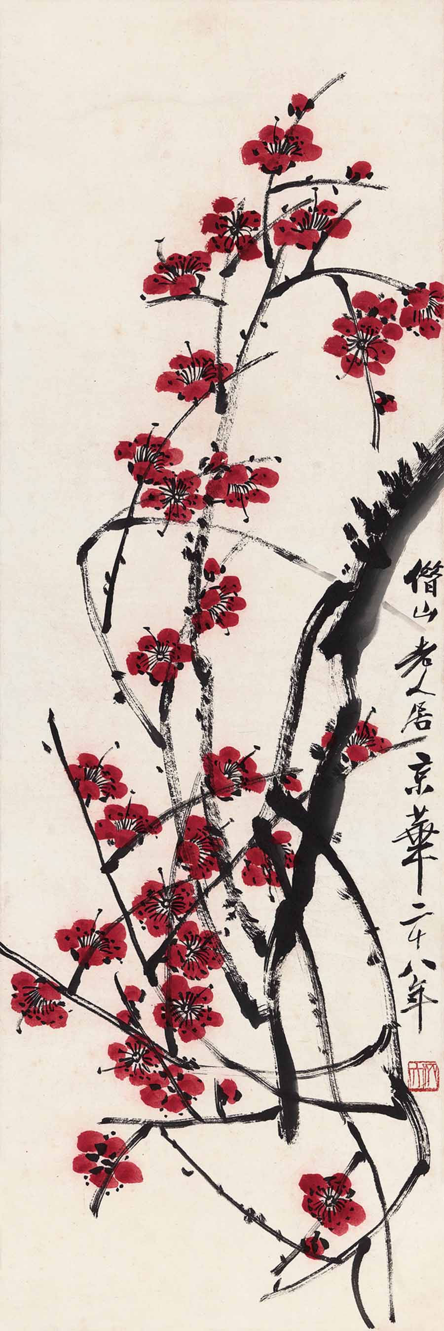 △吴昌硕 1925年作 双色梅花 152.5×83cm