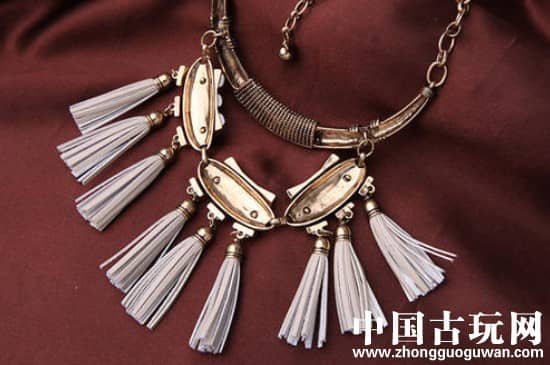 最后将做好了的流苏简单的修剪一下,并找一个中间有小孔的,漂亮的小珠子或其他配饰穿进流苏里打结,再用打火机将线头烧一下,将流苏穿进项链中即可制作完成。