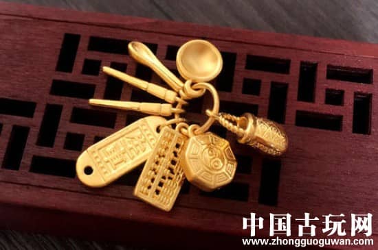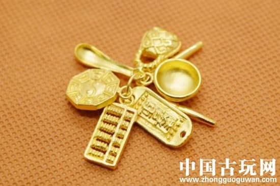 黄金吉祥七宝吊坠还有着长命富贵的寓意,因为黄金大多包含着富贵的意义在里面,且用黄金雕琢的吉祥七宝吊坠还拥有着喜庆吉利的独特美意,预示事业丰收。