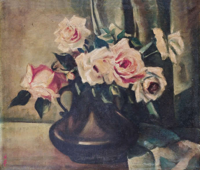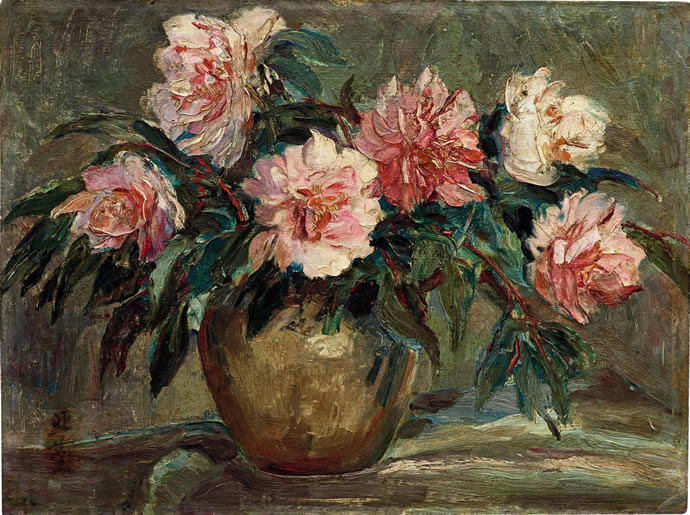 △汪亚尘油画 1935年作 芍药花 38×50cm