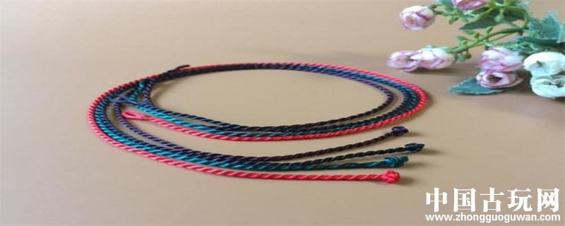 先用打火机将绳子的两端线头烧一下,用剪刀剪掉多余的部分。将绳子从中间处穿过去,两边的绳子保持一样的长度,用两根小绳子分开绑住绳子的两端,在绑扎的中间处穿几个小的珠子,之后交叉重复打结就可以了。