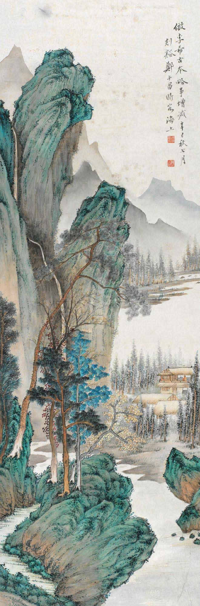 △郑午昌 1941年作 仿李希古青绿山水 90×30cm
