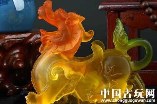 烧琉璃前先准备各色的人造水晶原料,按比例配置后放进高温炉中熔化。再用吹筒将熔化好的琉璃从炉中取出,取出后趁热用吹筒吹制,给琉璃塑形、定型。琉璃定型好后,再把它放到保温窑中放四天,取出后不炸裂就烧制好了。