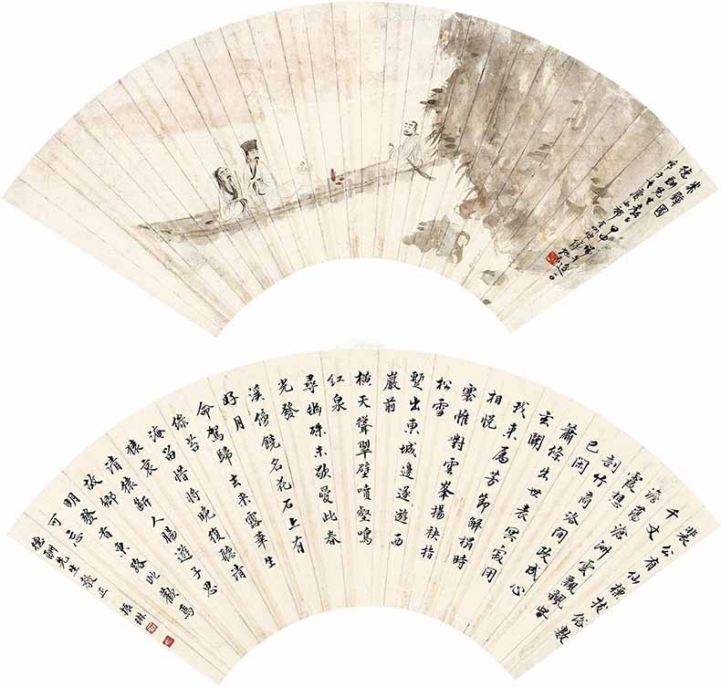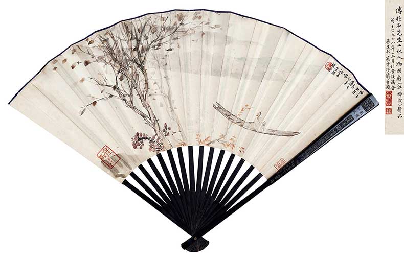 在中国传统的书画艺术中,扇画是一种独特的艺术形式,历代书画家留下了一批题诗作画的扇面精品,形制虽小,但抒情达意,惹人遐思。现在,更多的收藏家将目光转向了这一具备升值潜力的门类,精品扇面作品受到越来越多藏家的追捧。近现代扇画作品中,张大千、吴湖帆、傅抱石、潘天寿、黄宾虹、谢稚柳都是画扇高手,又将扇画推到一个高峰。”