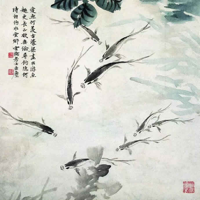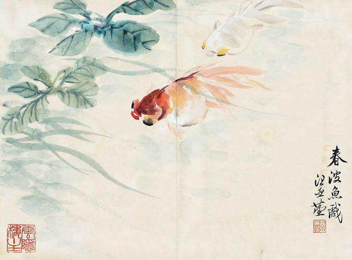 △汪亚尘 春波鱼戏图