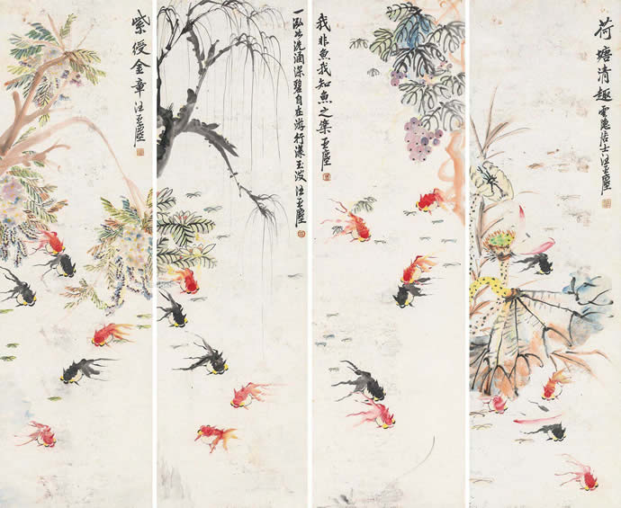 △鱼乐图 四条屏