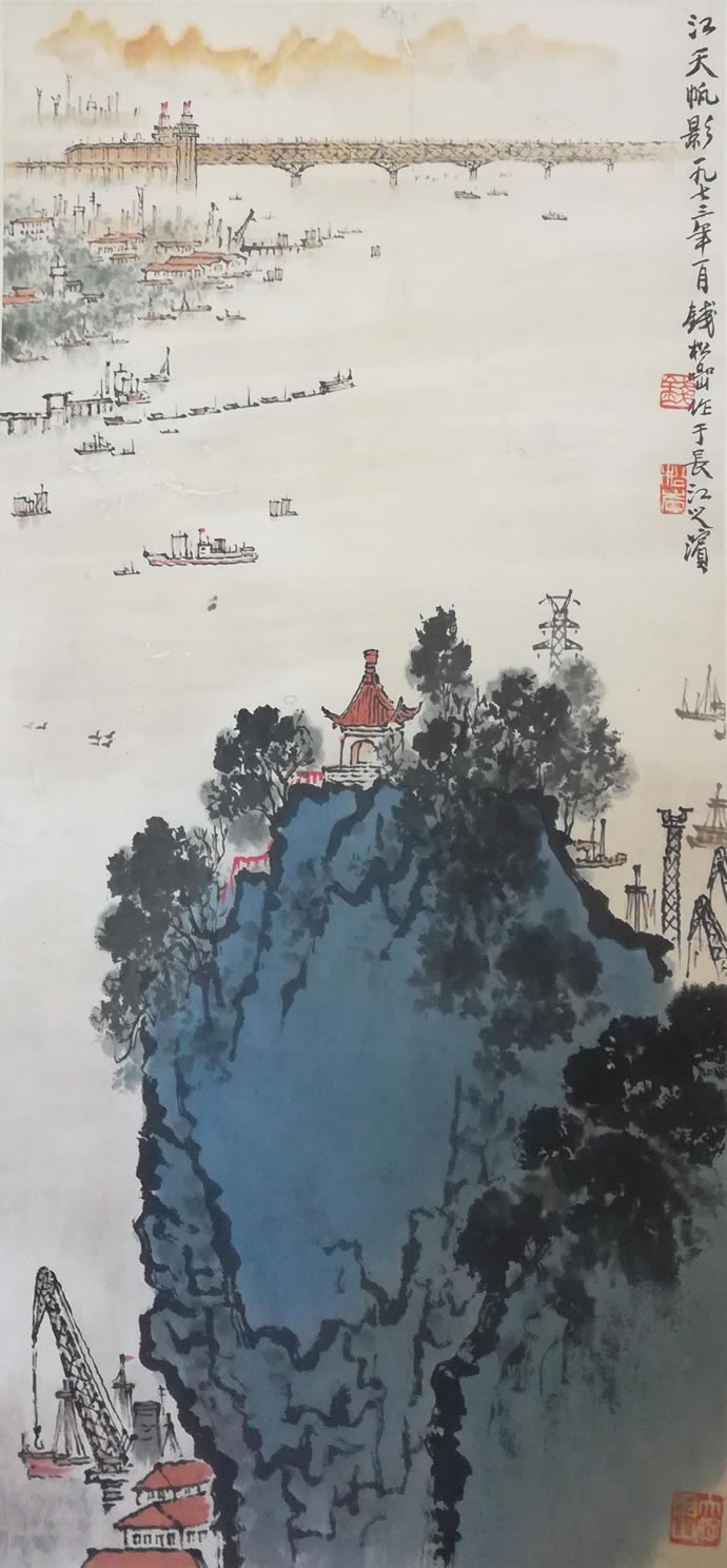 △钱松嵒山水画《江天帆影》【本站藏品】