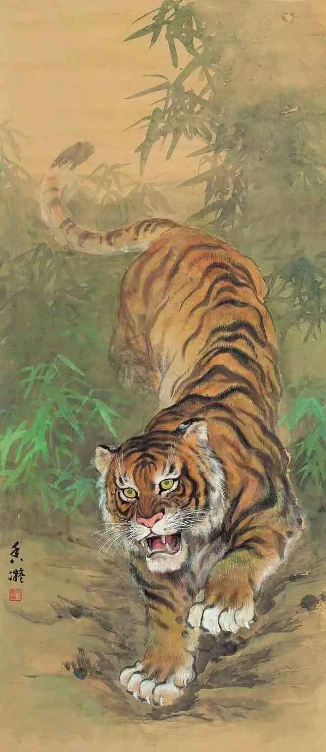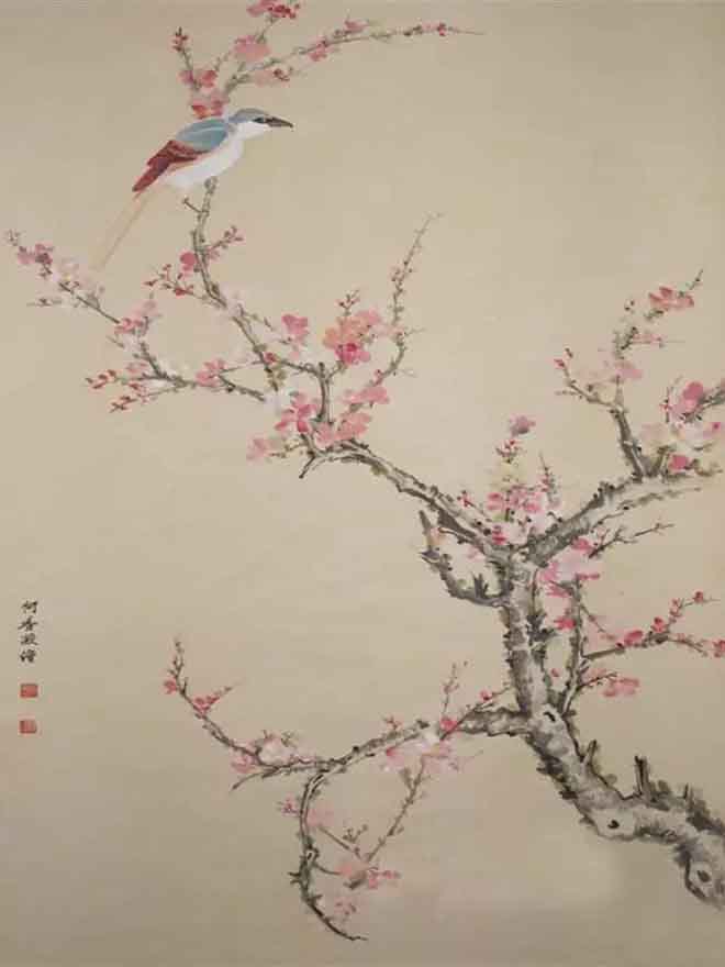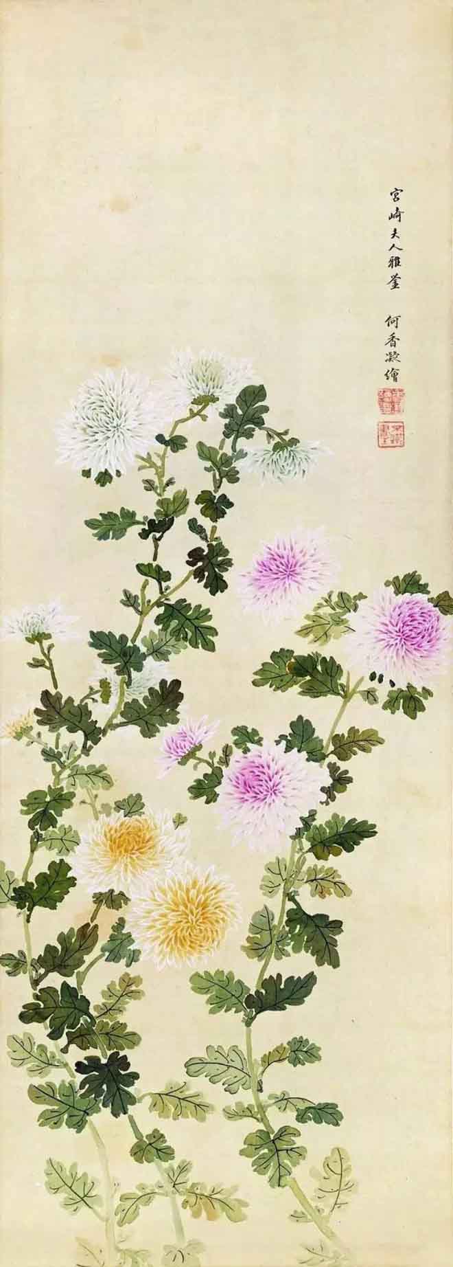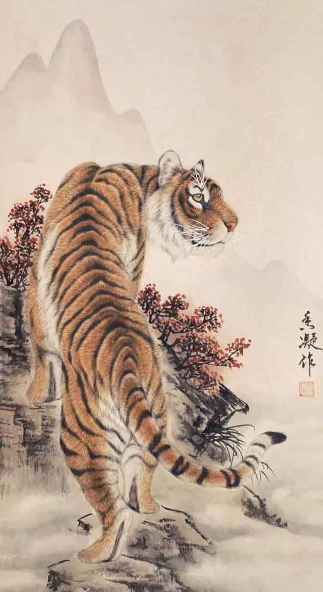 何香凝早期作品有浓厚的日本画风格,她以梅花和老虎为题材的绘画作品享誉海内外。她擅画山水,花卉,尤工狮、虎、鹿、鹤等动物。笔致圆浑细腻,色彩古艳雅逸,意态生动。著有《何香凝诗画集》。