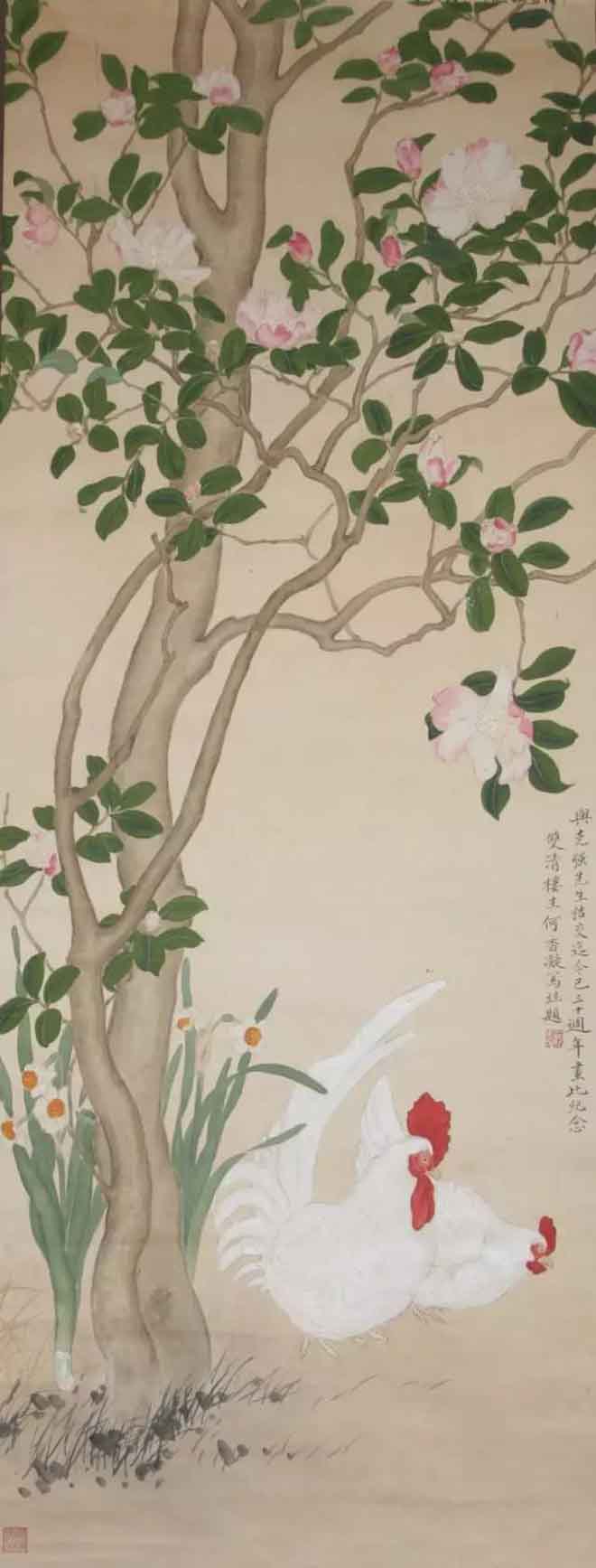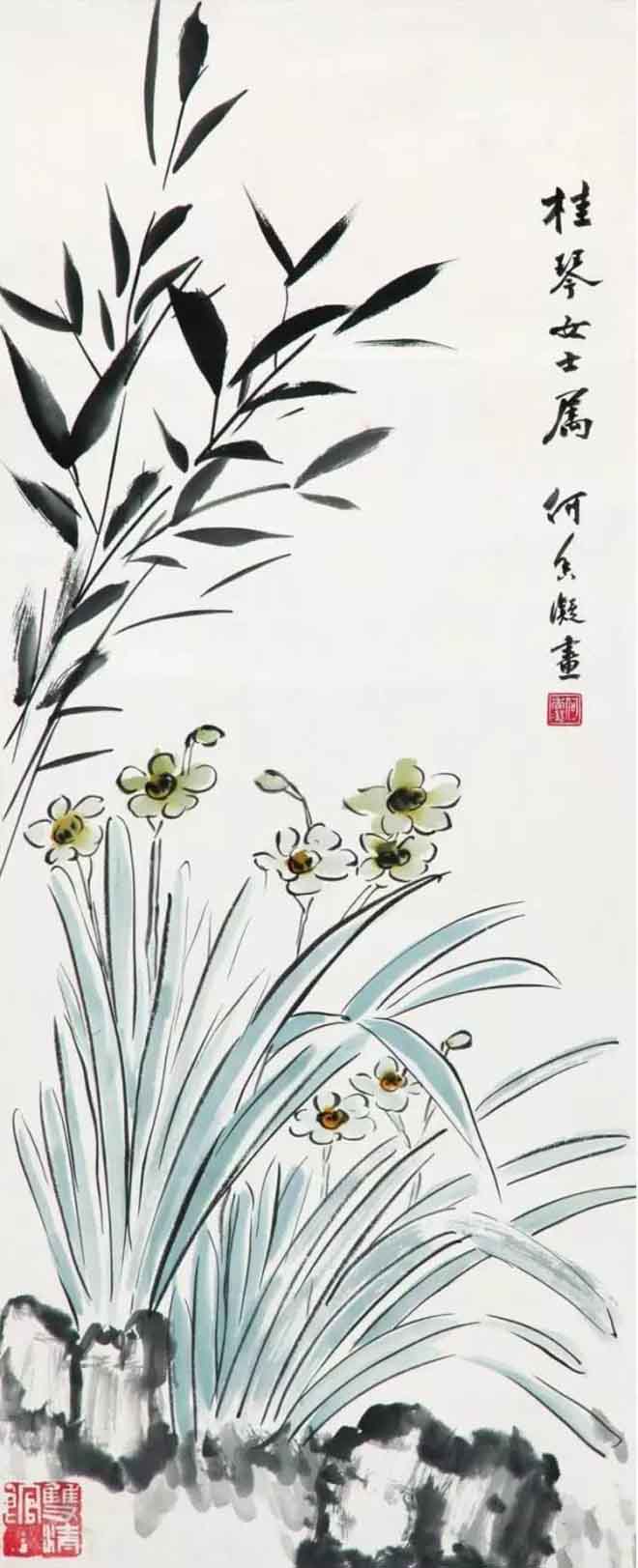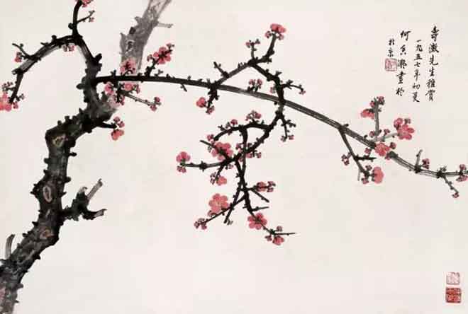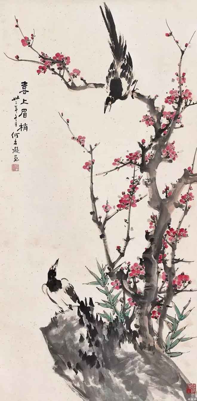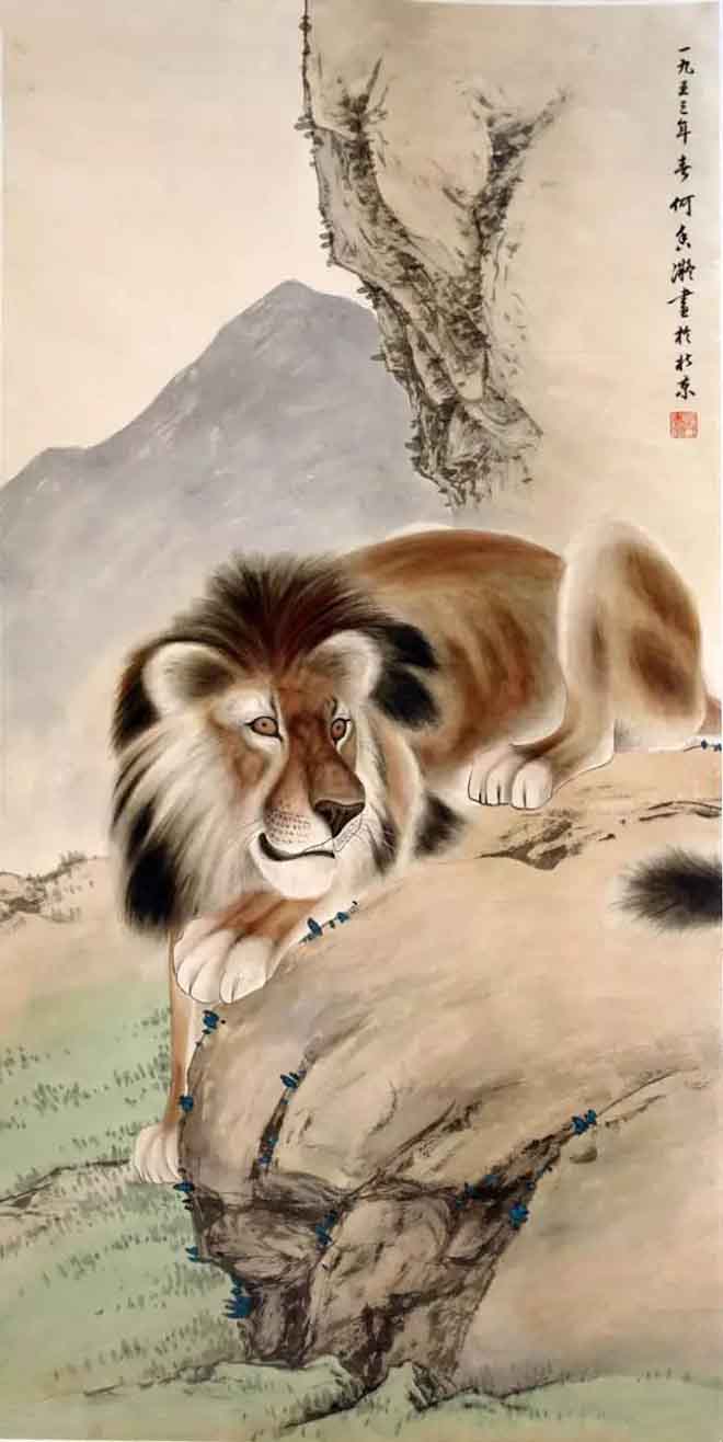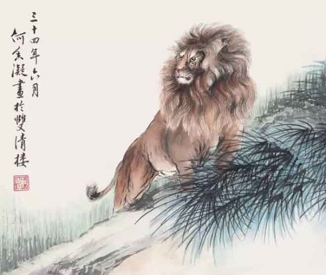 何香凝的画作立意讲究,她常借对松、梅、狮、虎及山川等的描绘,抒情明志。她的充满斗争之意的作品不仅记录着本世纪初叶以来的变幻风云,是中国现代史的缩影,同时也是她七十年***生涯和人格品行的生动写照。