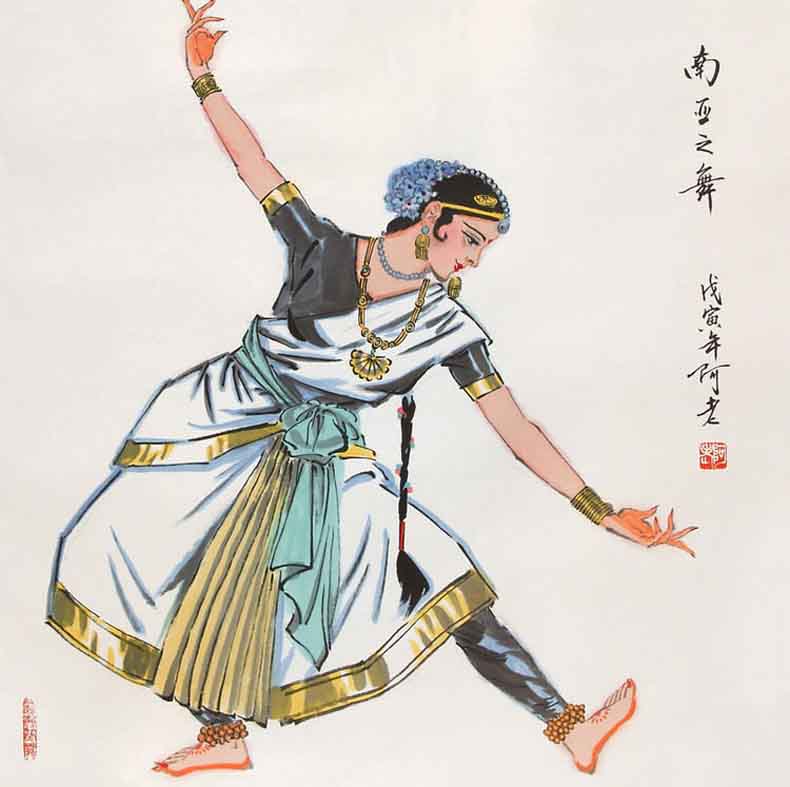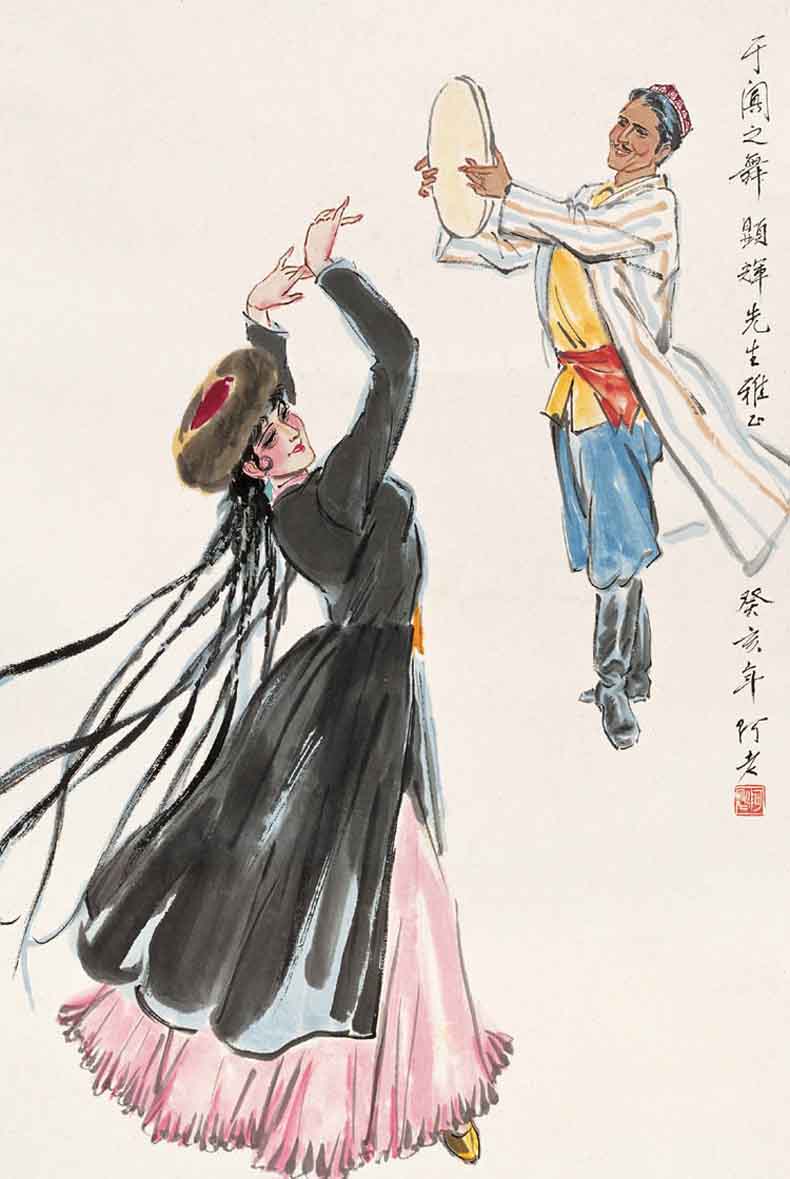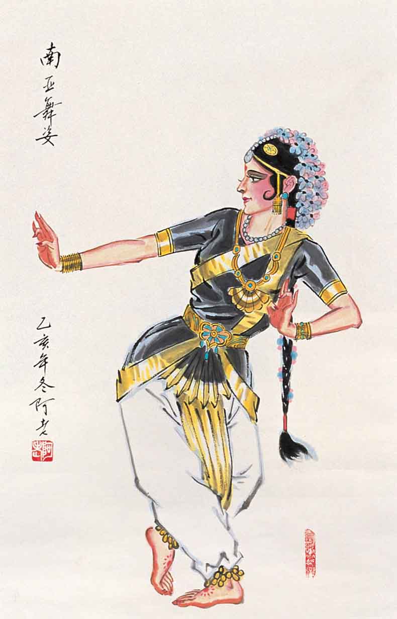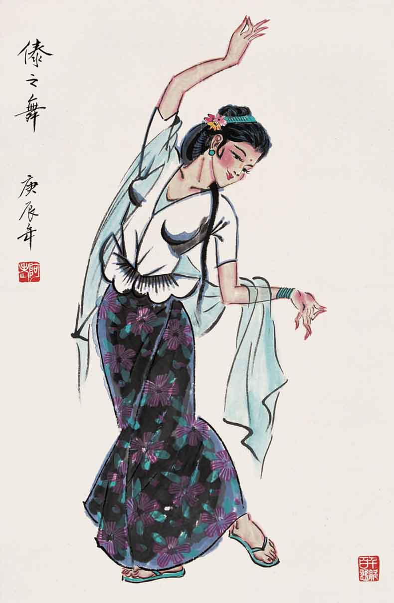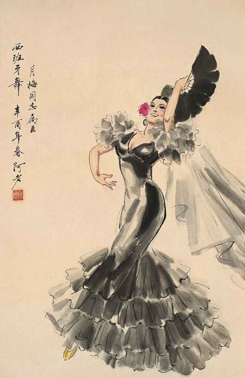 阿老(1920-),原名老宪洪。广东顺德人。当代著名画家,尤以舞蹈人物速写名世。其舞蹈人物画造型准确、洗练,线条娴熟流畅,善以音乐韵律感融入彩墨中,表现了不同的民族个性与庄重典雅柔美的气质。历任北京艺术学院、北京艺术师范学院副教授,中央工艺美术学院副教授、教授、副院长。