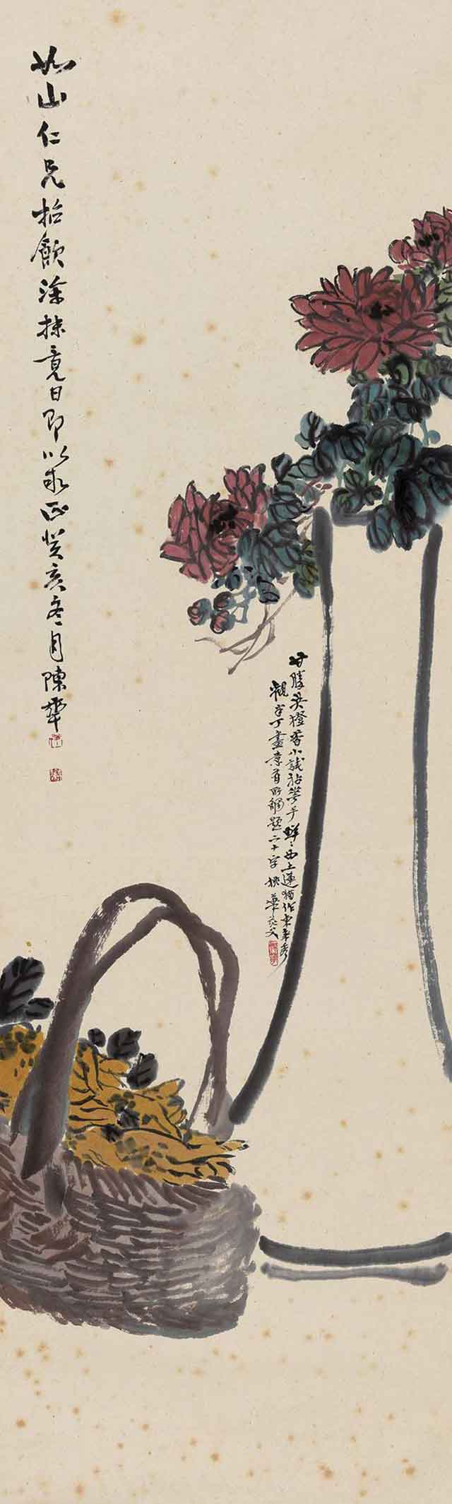 △陈半丁 1923年作 花卉 136×41cm