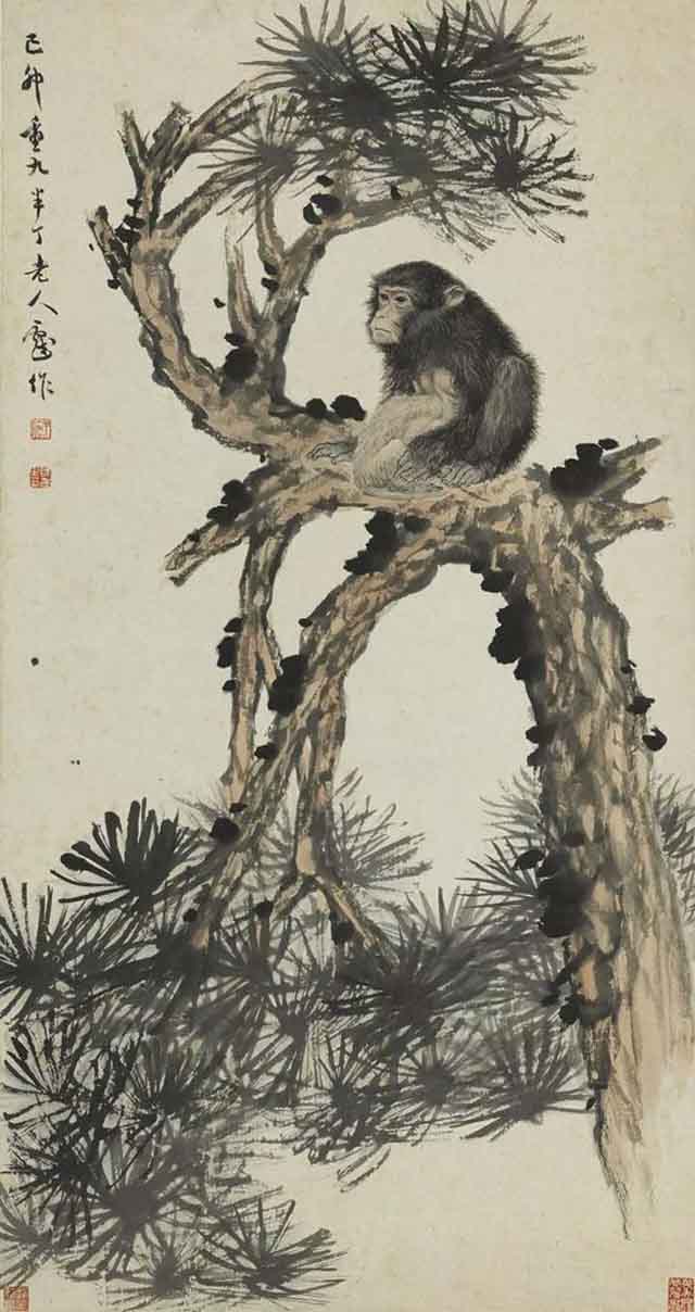 △陈半丁 1939年作 松猴图 83x44cm