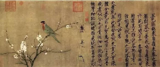 在画作《山禽腊梅图》中,宋徽宗的题诗是:“山禽矜逸态,梅粉弄轻柔。已有丹青约,千秋指白头”。也许在他看来,画画是前世今生的约定,是一辈子至死都不会消逝的挚爱。
