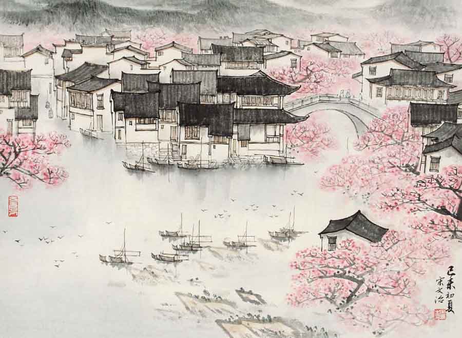 人间最美不过江南,江南最美不过春色。宋文志的江南春色图把这“人间最美的地方,最美的时刻,最美的景色”表现得让人如梦如醉,面对这幅幅美景,叫人怎能不去忆江南!