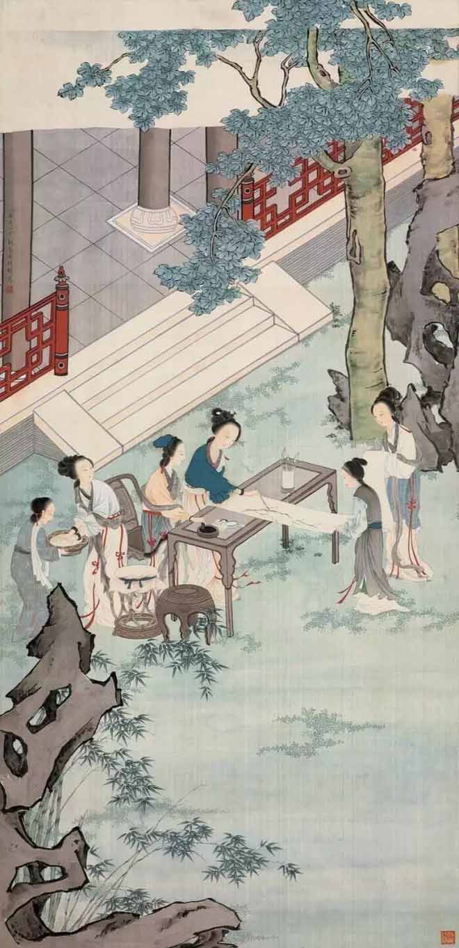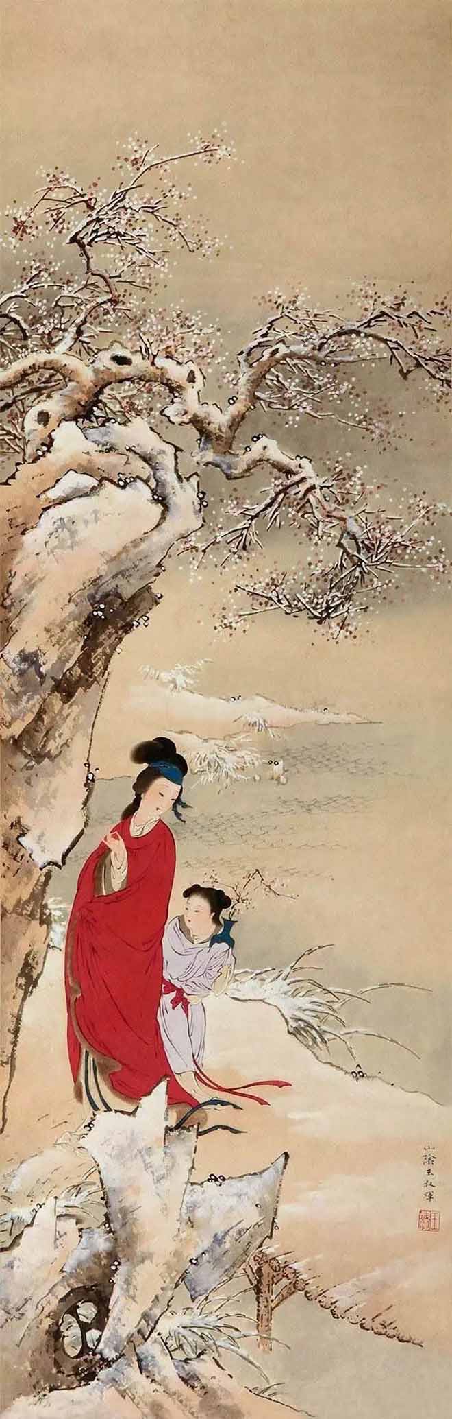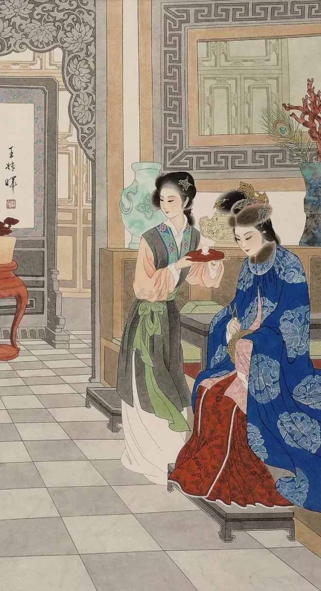 1978年初,王叔晖开始闭门谢客,潜心琢磨黛玉这一形象。她自定目标:10年内一定画完红楼十二钗。8年间,继黛玉之后,王叔晖陆续画了湘云、宝钗、凤姐、李纨、迎春、元春、惜春等,此外还创作了两幅宝琴立雪。孰料,《惜春作画》竟成绝笔,画未终,人先去,绵绵红楼情愫,未得尽意挥之笔端,留下了永久的遗憾!