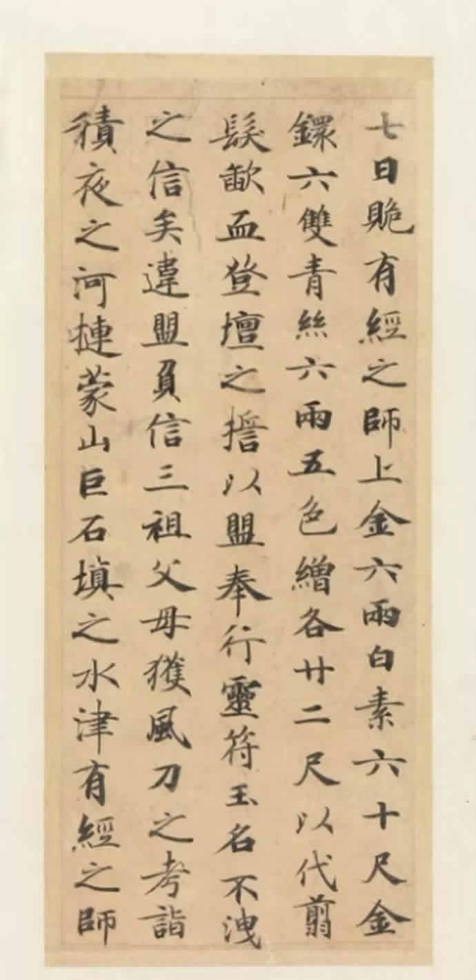 《灵飞经》是唐代著名小楷之一,无名款。元袁桷,明董其昌皆以为唐钟绍京书。《灵飞经》笔势圆劲,字体精妙。后人初习小楷多以此为范本。